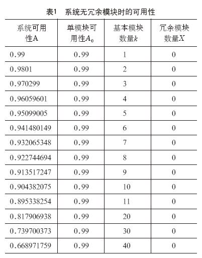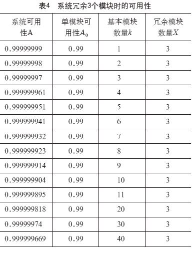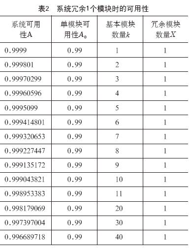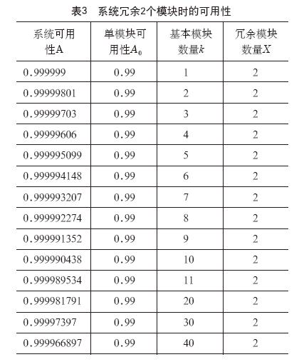 ③在冗余模塊數(shù)量一定的情況下,組成系統(tǒng)的模塊數(shù)量越多,可用性越低;