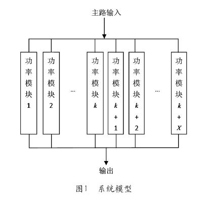 為了簡(jiǎn)化分析過程,只考慮功率模塊數(shù)量對(duì)系統(tǒng)可靠性的影響,采用圖1所示的系統(tǒng)模型。系統(tǒng)模型中雖然忽略了控制系統(tǒng)、蓄電池系統(tǒng)、旁路系統(tǒng)等因素,但對(duì)系統(tǒng)的定性分析沒有影響。
