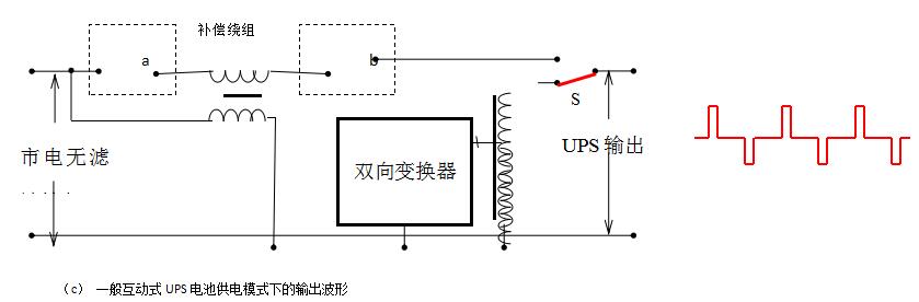 看一個(gè)產(chǎn)品是否優(yōu)秀首先看它是不是被人們認(rèn)可進(jìn)而去仿制。原來在線互動(dòng)式電路結(jié)構(gòu)只有APC一家獨(dú)有,而現(xiàn)在國(guó)內(nèi)眾多UPS制造商早已開始仿效。除了和上述的圖1(a)和(b)輸出正弦波波形一致的國(guó)內(nèi)產(chǎn)品外(+微信關(guān)注網(wǎng)絡(luò)世界),還有的推出了電路更加簡(jiǎn)單的像圖1(c)所示的國(guó)內(nèi)一些廠家的產(chǎn)品,雖然也有的稱為“在線互動(dòng)式”,但在電路結(jié)構(gòu)上區(qū)別很大。盡管在市電模式下的輸出電壓也是正弦波,但在電池模式下的輸出電壓就是準(zhǔn)方波了,這完全是后備式UPS輸出波形的特征;再有就是它的補(bǔ)償繞組電壓也是不穩(wěn)定的,因?yàn)樗鼇碜允须娮儔浩鞫皇莾?nèi)部逆變器,如圖1(c)所示,這個(gè)電壓是隨著市電波動(dòng)而變化的,補(bǔ)償效果就不如圖1(a)和(b)了。至于能不能具有上述的在線式的結(jié)果還有待于證實(shí)。